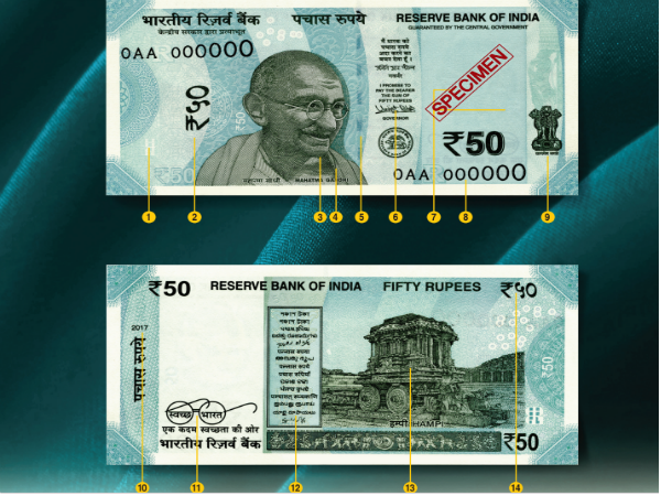 ಭಾರತೀಯ ರಿಸರ್ವ್ ಬ್ಯಾಂಕ್ (ಆರ್ಬಿಐ) ಮಹಾತ್ಮ ಗಾಂಧಿ (ಹೊಸ) ಸರಣಿಯ ಹೊಸ ರೂ. 50 ಮುಖಬೆಲೆಯ ನೋಟನ್ನು ಬಿಡುಗಡೆ ಮಾಡಿದೆ. ಹಳೆ ನೋಟು ರೂ. 50 ಕರೆನ್ಸಿಯ ನಿರ್ದಿಷ್ಟ ನಿಯತಾಂಕದ ಪ್ರಕಾರ ಇದು ವಿಭಿನ್ನವಾಗಿದೆ.