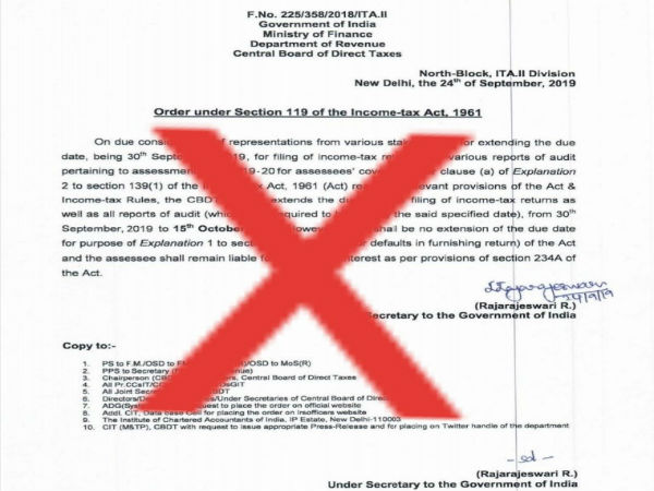 "ಸೋಶಿಯಲ್ ಮೀಡಿಯಾಗಳಲ್ಲಿ ಪ್ರಸಾರವಾಗುತ್ತಿರುವ ಐಟಿಆರ್ ಸಲ್ಲಿಕೆಗೆ ಸಂಬಂಧಿಸಿದ ದಿನಾಂಕ ವಿಸ್ತರಣೆಯ ಅಧಿಸೂಚನೆ ನಿಜವಾದದ್ದಲ್ಲ. ತೆರಿಗೆದಾರರು ಇಂತಹ ಸುಳ್ಳು ಸುದ್ದಿಗಳಿಗೆ ಕಿವಿಗೊಡಬಾರದು ಎಂದು ಆದಾಯ ತೆರಿಗೆ ಇಲಾಖೆ ಟ್ವೀಟ್ ಮೂಲಕ ಸೂಚಿಸಿದೆ. ಆದಾಯ ತೆರಿಗೆ ಕಾಯ್ದೆಯ ಸೆಕ್ಷನ್ 44ಎಬಿ ಅಡಿಯಲ್ಲಿ, ಕಂಪನಿಗಳು, ಪಾಲುದಾರಿಕೆ ಸಂಸ್ಥೆಗಳು, ಮಾಲೀಕತ್ವದ ಸಂಸ್ಥೆಗಳು ಹೀಗೆ ಲೆಕ್ಕಪರಿಶೋಧನೆಗೆ ಒಳಪಡುವ ಎಲ್ಲರಿಗೂ ಐಟಿಆರ್ ಸಲ್ಲಿಸಲು ಸೆಪ್ಟೆಂಬರ್ 30 ಕೊನೆಯ ದಿನಾಂಕವಾಗಿದೆ. ಐ-ಟಿ ಇಲಾಖೆಯ ನೀತಿಗಳನ್ನು ರೂಪಿಸುವ ಇನ್ಸ್ಟಿಟ್ಯೂಟ್ ಆಫ್ ಚಾರ್ಟರ್ಡ್ ಅಕೌಂಟೆಂಟ್ಸ್ ಆಫ್ ಇಂಡಿಯಾ (ಐಸಿಎಐ) ಇತ್ತೀಚೆಗೆ ಕೇಂದ್ರೀಯ ನೇರ ತೆರಿಗೆ ಮಂಡಳಿಗೆ (ಸಿಬಿಡಿಟಿ) ಪತ್ರ ಬರೆದಿತ್ತು. ಲೆಕ್ಕಪರಿಶೋಧಕ ಘಟಕಗಳಿಗೆ ಐಟಿಆರ್ ಸಲ್ಲಿಸುವ ಕೊನೆಯ ದಿನಾಂಕವನ್ನು ನವೆಂಬರ್ 30 ಕ್ಕೆ ವಿಸ್ತರಿಸಬೇಕೆಂದು ವಿನಂತಿಸಿದೆ.