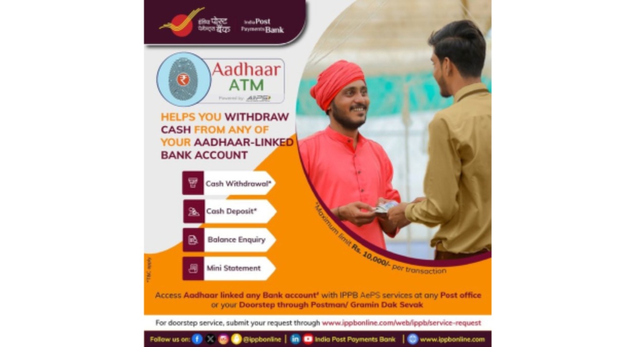 ಇಂಡಿಯಾ ಪೋಸ್ಟ್ ಪೇಮೆಂಟ್ಸ್ ಬ್ಯಾಂಕ್ X ನಲ್ಲಿ ಈ ಬಗ್ಗೆ ಪೋಸ್ಟ್ ಮಾಡಿದ್ದು, " ತುರ್ತು ನಗದು ಅಗತ್ಯವಿದೆ ಆದರೆ ಬ್ಯಾಂಕ್ಗೆ ಭೇಟಿ ನೀಡಲು ಸಮಯವಿಲ್ಲವೇ? ಚಿಂತಿಸಬೇಡಿ! ಜೊತೆಗೆ@IPPBOnline ಆಧಾರ್ ATM (AePS) ಸೇವೆ, ನಿಮ್ಮ ಮನೆಯಲ್ಲೇ ಹಣವನ್ನು ಹಿಂಪಡೆಯಿರಿ. ನಿಮ್ಮ ಪೋಸ್ಟ್ಮ್ಯಾನ್ ಈಗ ನಿಮ್ಮ ಮನೆ ಬಾಗಿಲಿಗೆ ಹಣವನ್ನು ಹಿಂಪಡೆಯಲು ಸಹಾಯ ಮಾಡುತ್ತಾರೆ. ಈಗ ಇದರ ಲಾಭ ಪಡೆದುಕೊಳ್ಳಿ!" ಎಂದು ಟ್ವೀಟ್ ಮಾಡಿದೆ.