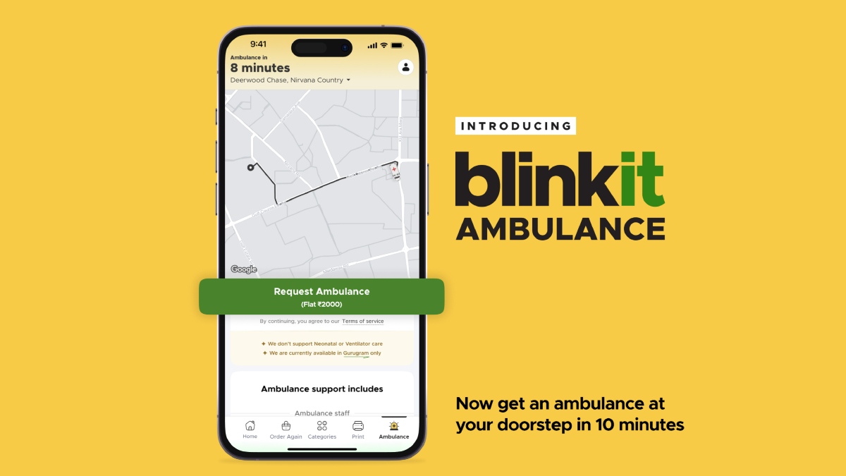 ಬ್ಲಿಂಕಿಟ್ ಸಿಇಒ ಅಲ್ಬಿಂದರ್ ದಿಂಡ್ಸಾ ಗುರ್ಗಾಂವ್ ನಿವಾಸಿಗಳಿಗೆ ಈ ಸೇವೆ ಘೋಷಿಸಿದ್ದು ಬ್ಲಿಂಕಿಟ್ ಬಳಕೆದಾರರು ಈಗ ಕೇವಲ 10 ನಿಮಿಷಗಳಲ್ಲಿ ತಮ್ಮ ಮನೆ ಬಾಗಿಲಿಗೆ ತುರ್ತು ಸಂದರ್ಭಗಳಲ್ಲಿ ಆಂಬ್ಯುಲೆನ್ಸ್ ಸೇವೆಗಳನ್ನು ಆರ್ಡರ್ ಮಾಡಿ ಪಡೆಯಬಹುದಾಗಿದೆ.