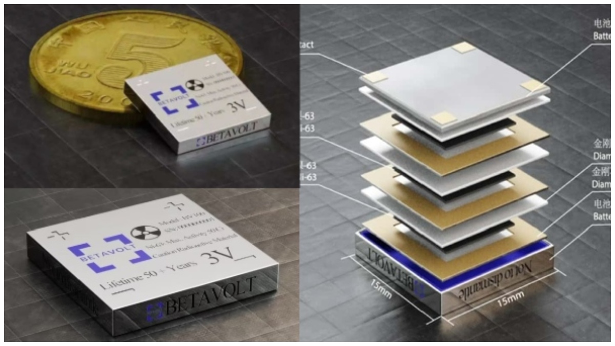 ಪರಮಾಣು ಶಕ್ತಿಯ ಬ್ಯಾಟರಿಗಳು ನಿರ್ವಹಣೆಯಿಲ್ಲದೆ 50 ವರ್ಷಗಳವರೆಗೆ ಸ್ಥಿರವಾಗಿರುತ್ತವೆ ಮತ್ತು ಸ್ವಯಂ-ಉತ್ಪಾದಿಸುತ್ತದೆ ಎಂದು ಬೀಟಾವೋಲ್ಟ್ (Betavolt) ಹೇಳುತ್ತದೆ. ಬ್ಯಾಟರಿಗಳು ಪ್ರಾಯೋಗಿಕ ಹಂತವನ್ನು ಪ್ರವೇಶಿಸಿವೆ ಮತ್ತು ಬೃಹತ್ ಉತ್ಪಾದನೆಗೆ ಮಾರುಕಟ್ಟೆಗೆ ತರಲಾಗುವುದು.