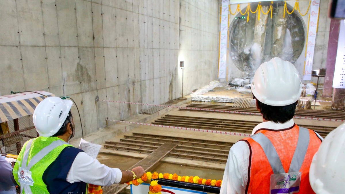 ಗುರುವಾರ ಸಂಜೆ 6.08ಕ್ಕೆ ಸುರಂಗ ಕೊರೆಯುವ ಯಂತ್ರ (ಟಿಬಿಎಂ) ಭದ್ರಾ ಹೊರ ಬರುತ್ತಿದ್ದಂತೆ ಕೆ.ಜಿ.ಹಳ್ಳಿ ಮೆಟ್ರೋ ನಿಲ್ದಾಣದಲ್ಲಿ ಸಂಭ್ರಮ ಮನೆ ಮಾಡಿತ್ತು.