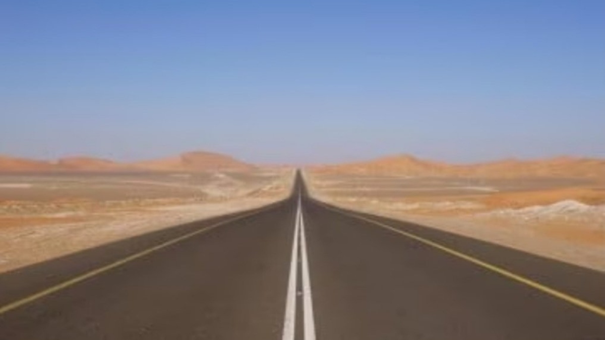 ಅರಬ್ ನ್ಯೂಸ್ ಪ್ರಕಾರ, ಇದು ತೈಲ ಮತ್ತು ಅನಿಲ ನಿಕ್ಷೇಪಗಳಿಗೆ ಹೆಸರುವಾಸಿಯಾದ ನಗರವಾದ ಹರದ್ನಿಂದ ಯುನೈಟೆಡ್ ಅರಬ್ ಎಮಿರೇಟ್ಸ್ನ ಗಡಿಯ ಸಮೀಪವಿರುವ ಅಲ್ ಬಥಾವರೆಗೆ ಸಾಗುತ್ತದೆ ಎಂದು ತಿಳಿಸಿದೆ. ಗಿನ್ನೆಸ್ ವಿಶ್ವ ದಾಖಲೆಗಳ ಪ್ರಕಾರ, ಇದು ಎಡ ಅಥವಾ ಬಲಕ್ಕೆ ಯಾವುದೇ ಬಾಗುವಿಕೆ ಅಥವಾ ಯಾವುದೇ ಗಮನಾರ್ಹವಾದ ಗ್ರೇಡಿಯಂಟ್ ಮೇಲಕ್ಕೆ ಅಥವಾ ಕೆಳಗಿರುವ ಮರುಭೂಮಿಯ ಉದ್ದಕ್ಕೂ ನಿರ್ಮಾಣಗೊಂಡಿದೆ. ಸೂಪರ್-ಸ್ಟ್ರೈಟ್ ಸ್ಟ್ರೆಚ್ ಸುಮಾರು 2 ಗಂಟೆಗಳ ಅಂದಾಜು ಚಾಲನಾ ಸಮಯವನ್ನು ಹೊಂದಿದೆ.