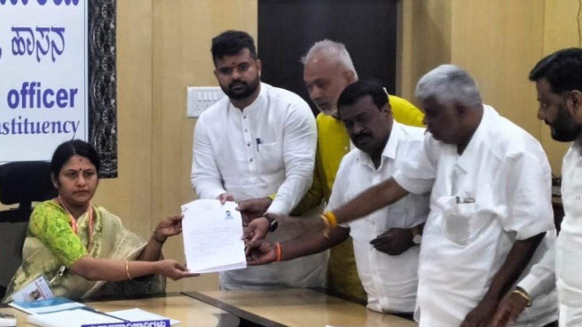 ಬೆಂಗಳೂರು, ಮಾರ್ಚ್ 29: ಏ. 26ರಂದು ನಡೆಯುವ ರಾಜ್ಯದ 14 ಲೋಕ ಸಭಾ ಕ್ಷೇತ್ರಗಳಲ್ಲಿ ನಾಮಪತ್ರ ಸಲ್ಲಿಕೆ ಮಾ.28 ರಿಂದ ಆರಂಭವಾಗಿದ್ದು, ಇದರೊಂದಿಗೆ ರಾಜ್ಯದ ಚುನಾವಣಾ ಕಣ ರಂಗೇರಿದೆ. ಇನ್ನು ನಾಮಪತ್ರ ಸಲ್ಲಿಕೆಯ ಮೊದಲ ದಿನ ಹಾಸನ ಲೋಕಸಭಾ ಕ್ಷೇತ್ರದ ಬಿಜೆಪಿ - ಜೆಡಿಎಸ್ ಮೈತ್ರಿ ಅಭ್ಯರ್ಥಿಯಾಗಿ ಪ್ರಜ್ವಲ್ ರೇವಣ್ಣ ಗುರುವಾರ ನಾಮಪತ್ರ ಸಲ್ಲಿಸಿದ್ದಾರೆ. ಚುನಾವಣಾಧಿಕಾರಿಯಾಗಿರುವ ಹಾಸನ ಜಿಲ್ಲಾಧಿಕಾರಿ ಅವರಿಗೆ ಪ್ರಜ್ವಲ್ ರೇವಣ್ಣ ತಮ್ಮ ಉಮೇದುವಾರಿಕೆಯನ್ನು ಸಲ್ಲಿಸಿದ್ದಾರೆ.