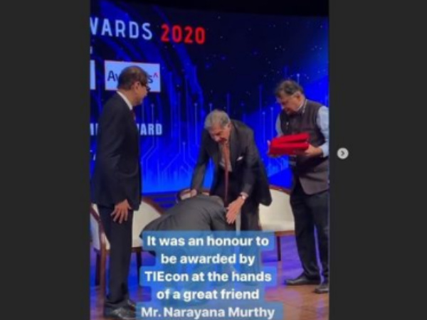 ಮುಂಬೈನಲ್ಲಿ ನಡೆದ ಟಿಐಇ ಸಮಾವೇಶದಲ್ಲಿ ಈ ಇಬ್ಬರೂ ಪಾಲ್ಗೊಂಡಿದ್ದರು. ಈ ವೇಳೆ ಜೀವಮಾನ ಸಾಧನೆಗಾಗಿ ರತನ್ ಟಾಟಾ ಅವರಿಗೆ ಸನ್ಮಾನ ಮಾಡಲಾಯಿತು. ಈ ಸನ್ಮಾನವನ್ನು ನಾರಾಯಣ ಮೂರ್ತಿ ಅವರೇ ಮಾಡಿದರು. ಅ ನಂತರ ರತನ್ ಟಾಟಾ ಅವರ ಕಾಲು ಮುಟ್ಟಿ ನಮಸ್ಕಾರ ಮಾಡಿದರು.
