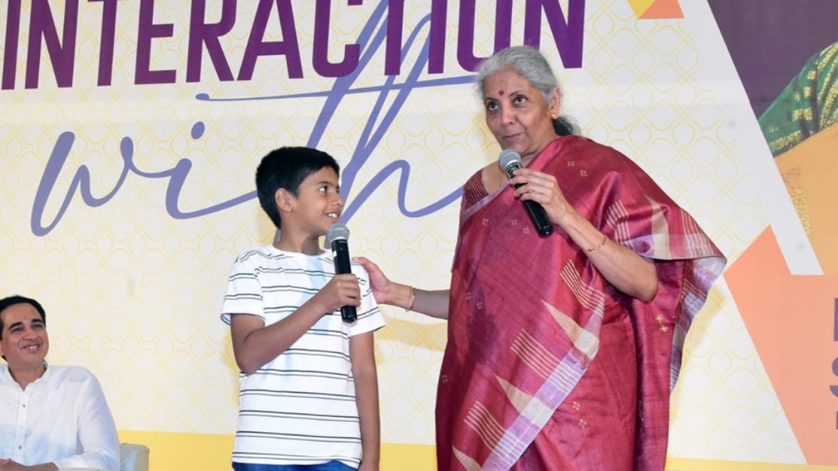 ಇದೇ ವೇಳೆ ,ಐದನೇ ತರಗತಿ ವಿದ್ಯಾರ್ಥಿಯೊಬ್ಬ ಹಣಕಾಸಿನ ವಿಚಾರದಲ್ಲಿ ಮಕ್ಕಳು ಕಲಿಯಬೇಕಾದ ಪಾಠ ಏನು ಎಂದು ಪ್ರಶ್ನೆ ಮಾಡುವ ಮೂಲಕ ಹಣಕಾಸು ಸಚಿವರ ಹಾಗೂ ನೆರೆದವರ ಗಮನ ಸೆಳೆದಿದ್ದಾನೆ. ಪುಟಾಣಿ ಬಾಲಕನ ಪ್ರಶ್ನೆ ಕೇಳಿದ ಸಚಿವೆ ನಿರ್ಮಲಾ, ಆತನನ್ನು ವೇದಿಕೆಗೆ ಕರೆಸಿಕೊಂಡು ಬೆನ್ನುತಟ್ಟಿ ಪ್ರೋತ್ಸಾಹಿಸಿದರು.