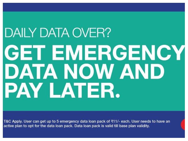 ಜಿಯೊದ ಬಳಕೆದಾರರು ತಮ್ಮ ಹೈಸ್ಪೀಡ್ ಡೇಟಾದ ಕೋಟಾ ಮುಗಿದು ಹೋದಾಗ, ತಕ್ಷಣವೇ ರಿಜಾರ್ಜ್ ಮಾಡಿಕೊಳ್ಳಲು ಸಾಧ್ಯವಾಗದಿರುವ ಪರಿಸ್ಥಿತಿಯಲ್ಲಿ 'ಈಗಲೇ ರೀಚಾರ್ಜ್ ಮಾಡಿಕೊಳ್ಳಿ ಮತ್ತು ನಂತರ ಪಾವತಿಸಿ' ಅನುಕೂಲತೆಯನ್ನು ತುರ್ತು ಡೇಟಾ ಸಾಲ ಸೌಲಭ್ಯ ಒದಗಿಸುತ್ತದೆ.