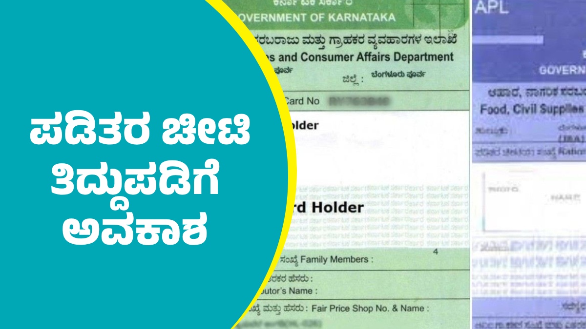 ಆಹಾರ ಇಲಾಖೆ ಪಡಿತರ ಚೀಟಿದಾರರಿಗೆ ಮಹತ್ವದ ಸುದ್ದಿಗಳನ್ನು ನೀಡುತ್ತಲಿರುತ್ತದೆ. ಹಾಗೆಯೇ ಇದೀಗ ಮತ್ತೆ ಪಡಿತರ ಚೀಟಿ ತಿದ್ದುಪಡಿಗೆ ಅವಕಾಶ ಕಲ್ಪಿಸಿದೆ. ಹೆಸರು ಸೇರ್ಪಡೆ, ತಿದ್ದುಪಡಿಗೆ ಮತ್ತೆ ಅವಕಾಶ ಕಲ್ಪಿಸಲಾಗಿದೆ. ಪಡಿತರ ಚೀಟಿದಾರರು ಹೆಸರು ತಿದ್ದುಪಡಿ, ಹೊಸ ಸದಸ್ಯರ ಸೇರ್ಪಡೆ, ವಿಳಾಸ ಬದಲಾವಣೆ, ಹೆಸರು ತೆಗೆಸುವುದಕ್ಕೆ ಅವಕಾಶ ನೀಡಲಾಗಿದೆ.