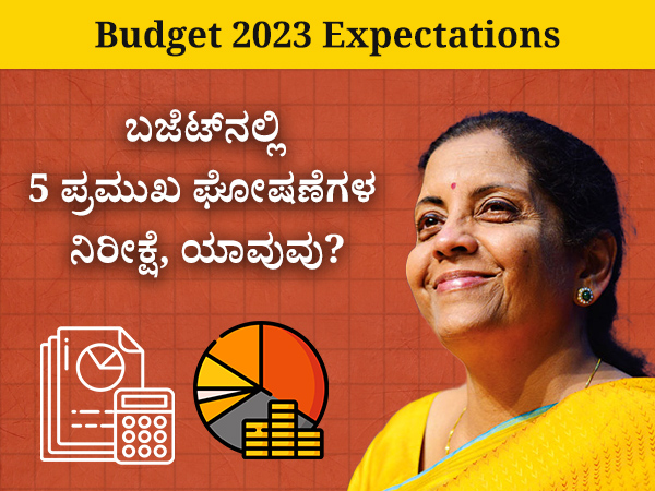 ಸರ್ಕಾರವು ಆದಾಯಕ್ಕಿಂತ ಅಧಿಕ ವೆಚ್ಚವನ್ನು ಮಾಡಿದ್ದರೆ, ಈ ಬಾರಿಯೂ ಹಣಕಾಸು ಕೊರತೆ ಹೆಚ್ಚಾಗುವ ನಿರೀಕ್ಷೆಯಿದೆ. ಅಂದರೆ ಡೆಫಿಸಿಟ್ ಬಜೆಟ್ ಆಗುವ ಸಾಧ್ಯತೆಯಿದೆ. ಇದರಿಂದಾಗಿ ಹಣದುಬ್ಬರ ಹಾಗೂ ಬಡ್ಡಿದರ ಹೆಚ್ಚಾಗುವ ಸಾಧ್ಯತೆಯಿದೆ ಎಂದು ತಜ್ಞರುಗಳು ಹೇಳುತ್ತಾರೆ. ಆದರೆ ಸರ್ಕಾರ ಈ ಬಾರಿ ಪ್ರಮುಖ 5 ಘೋಷಣೆ ಮಾಡಬಹುದು ಎಂಬ ನಿರೀಕ್ಷೆಯನ್ನು ಜನರು ಹೊಂದಿದ್ದಾರೆ. ಆ ನಿರೀಕ್ಷೆಗಳ ಬಗ್ಗೆ ತಿಳಿಯೋಣ ಮುಂದೆ ಓದಿ....